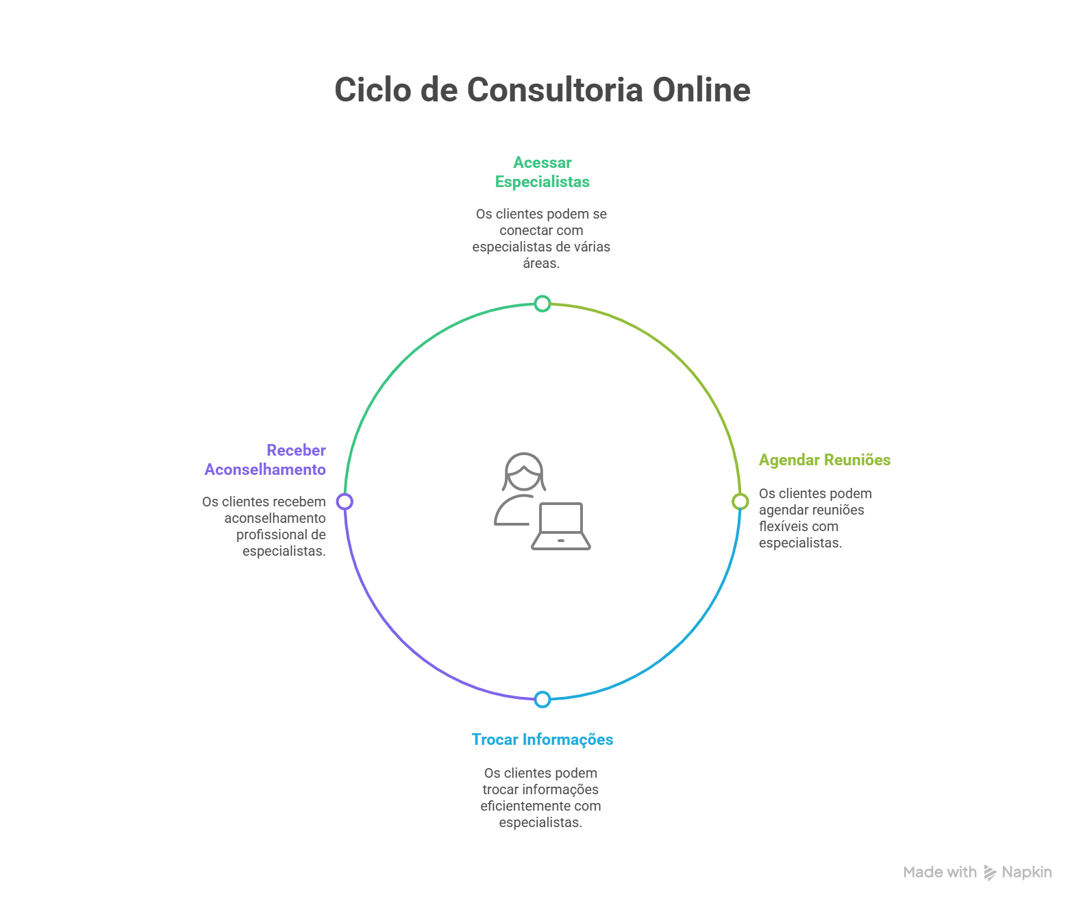 A consultoria online representa uma evolução natural do mercado de trabalho. É a união perfeita entre tecnologia e expertise humana.