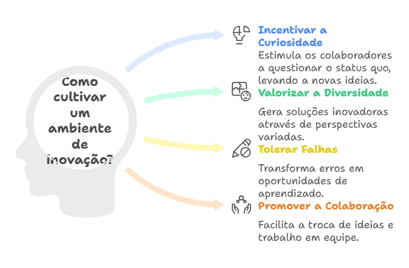 A cultura é o alicerce da inovação. É crucial criar um ambiente onde novas ideias são bem-vindas e o fracasso é visto como uma oportunidade de aprendizado. As pessoas são o motor da inovação. Investir em talentos criativos e diversificados, e incentivá-los a pensar fora da caixa, é essencial.