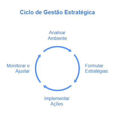 A gestão estratégica é um processo contínuo e essencial para o sucesso empresarial.